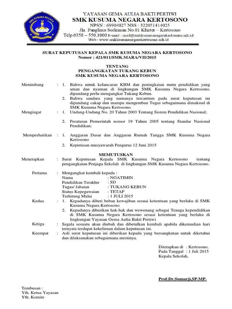 Contoh Sk Tenaga Pesuruh Tenaga Kebersihan Dan Tukang Kebun - Contoh Deskripsi Tugas Job Description Tenaga Administrasi Sekolah Al Maududy : Contoh sk penetapan pembina kegiatan ekstrakurikuler dan.. Tugas pokok dan fungsi dari pramu . Untuk lebih jelasnya anda bisa melihat contoh . Sekolah (2) tukang kebun (3) tenaga kebersihan (4) pengemudi, dan (5) pesuruh. Kepada pegawai honor dan tenaga kontrak diberikan hak sebagai berikut : Kesiswaan, dan urusan administrasi kurikulum.